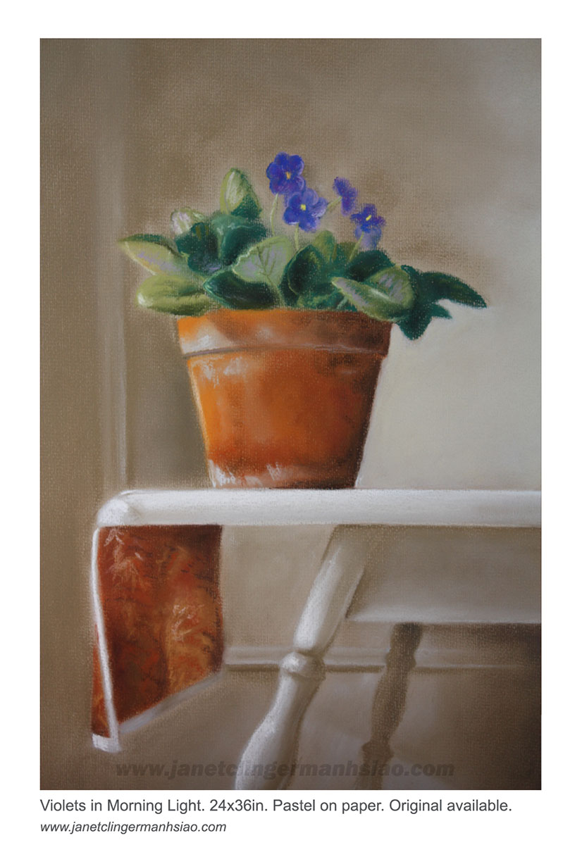 Violets in Morning Light. 36x24in. Pastel on paper. Original available.