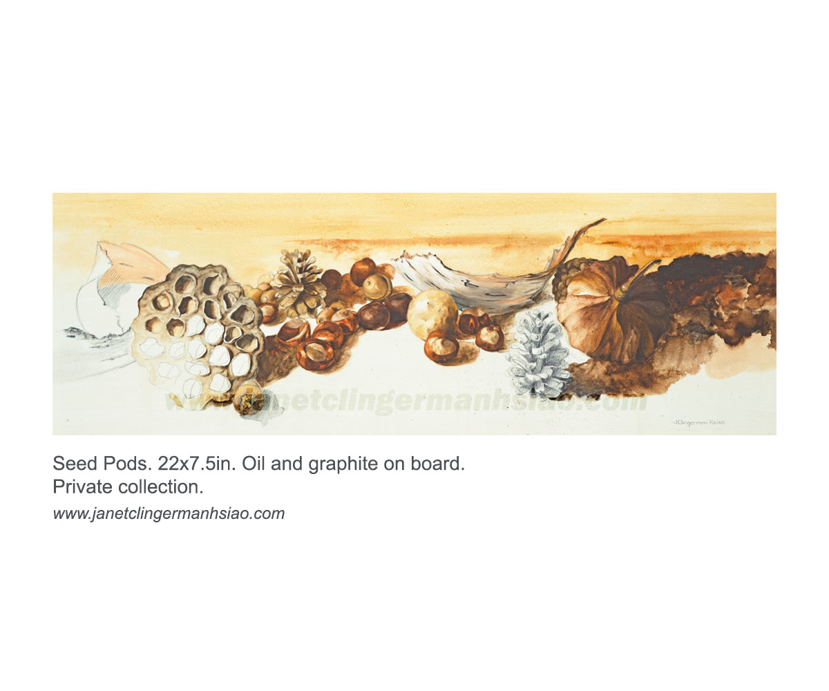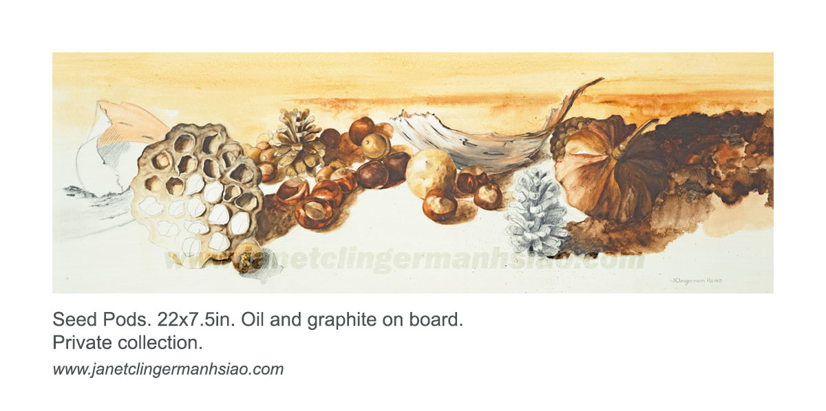 Seed Pods. 22x7.5in. Oil and graphite on board. Private collection.
