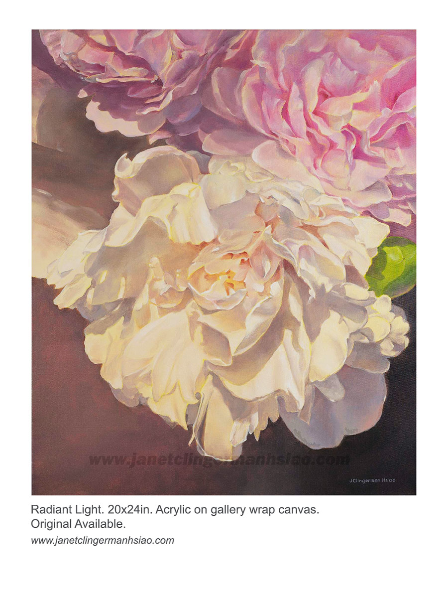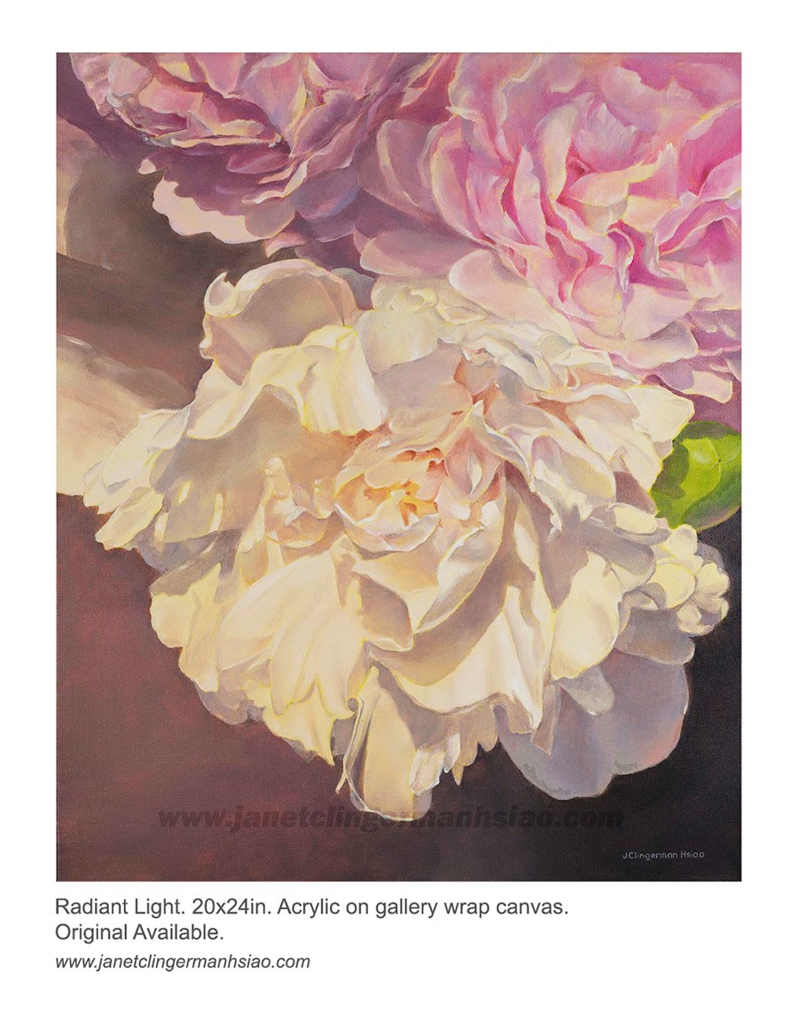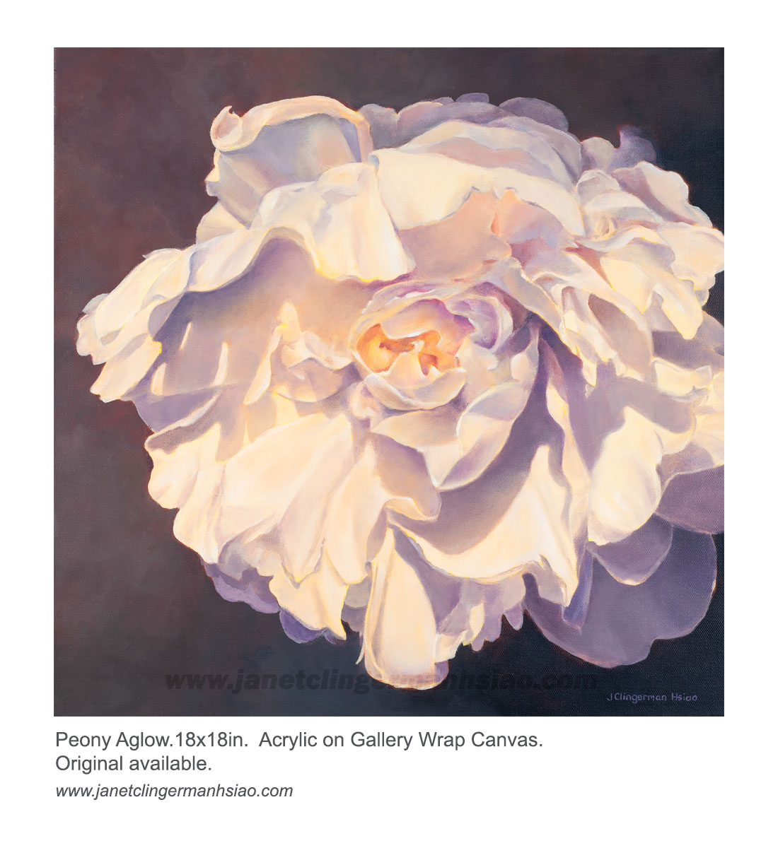 Peony Aglow.18x18in. Acrylic on Gallery Wrap Canvas. Original available.