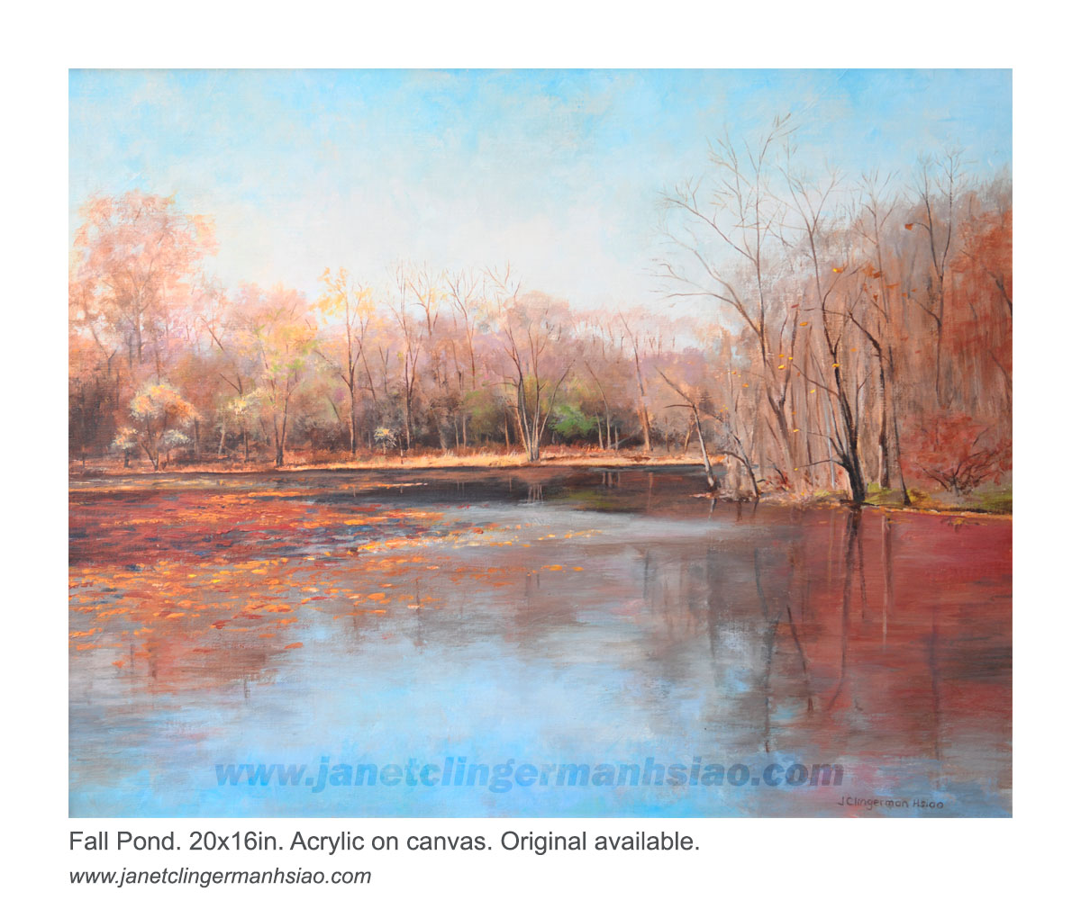 Fall Pond. 16x20in. Acrylic on canvas. Original available.