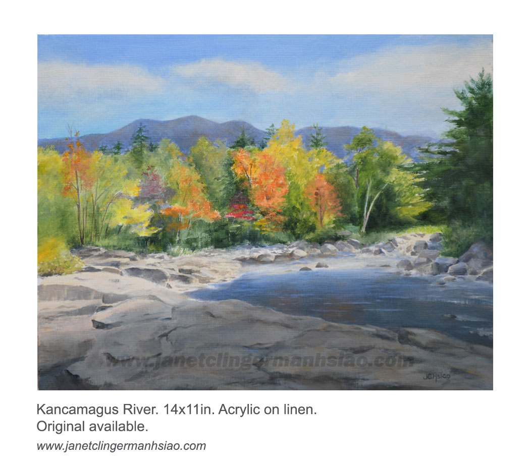 Kancamagus River. 11x14in. Acrylic on linen. Original available.