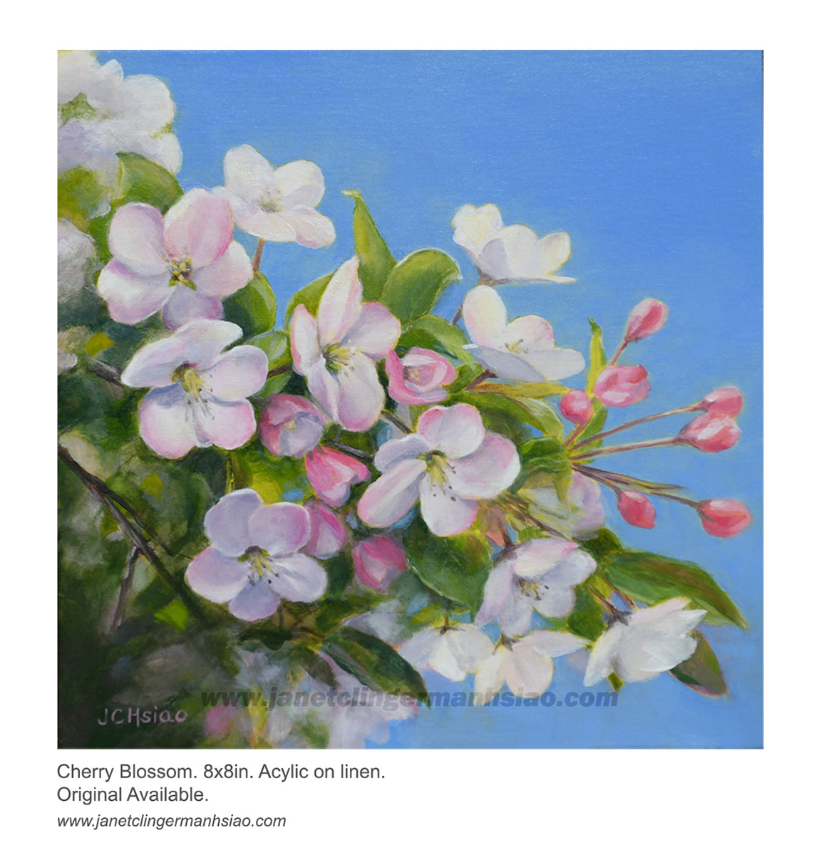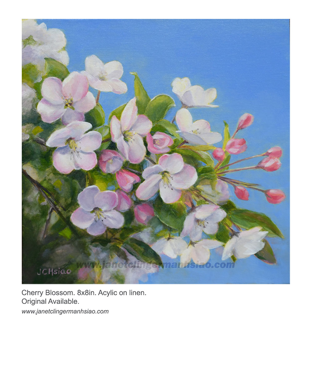 Cherry Blossom. 8x8in. Acylic on linen. Original Available.