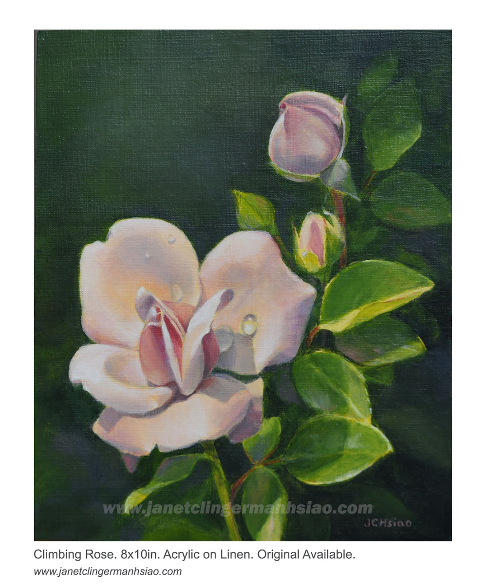 Climbing Rose. 8x10in. Acrylic on Linen. Original Available.