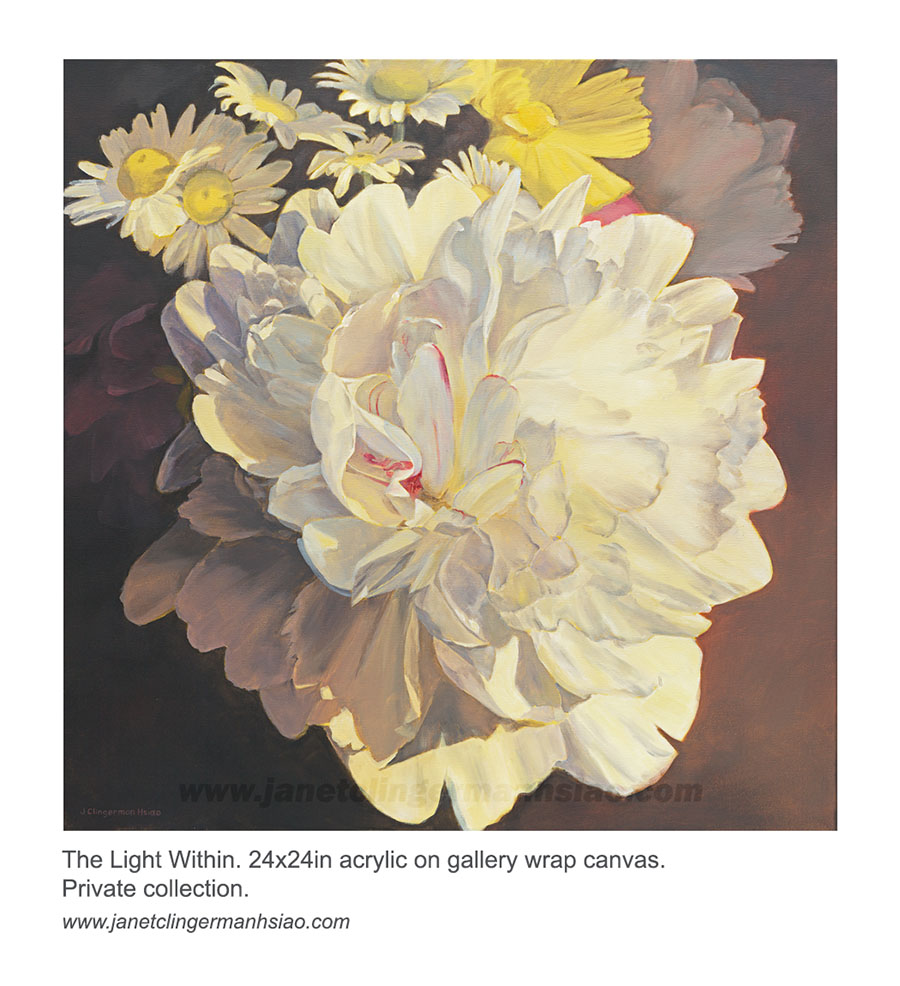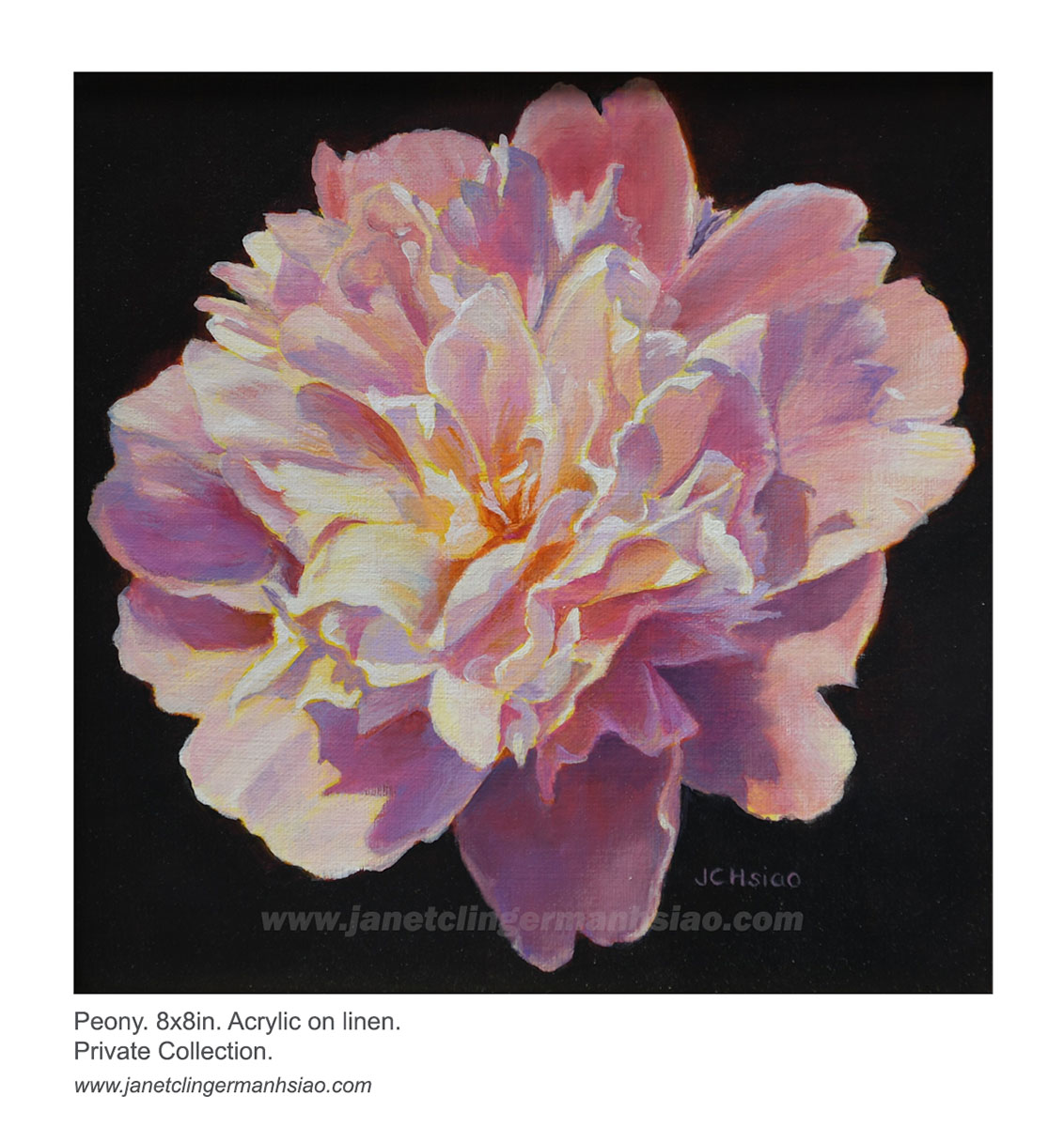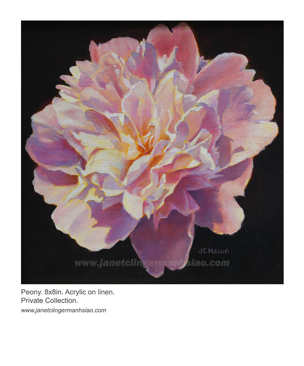 Peony. 8x8in. Acrylic on linen. Private Collection-corrected.