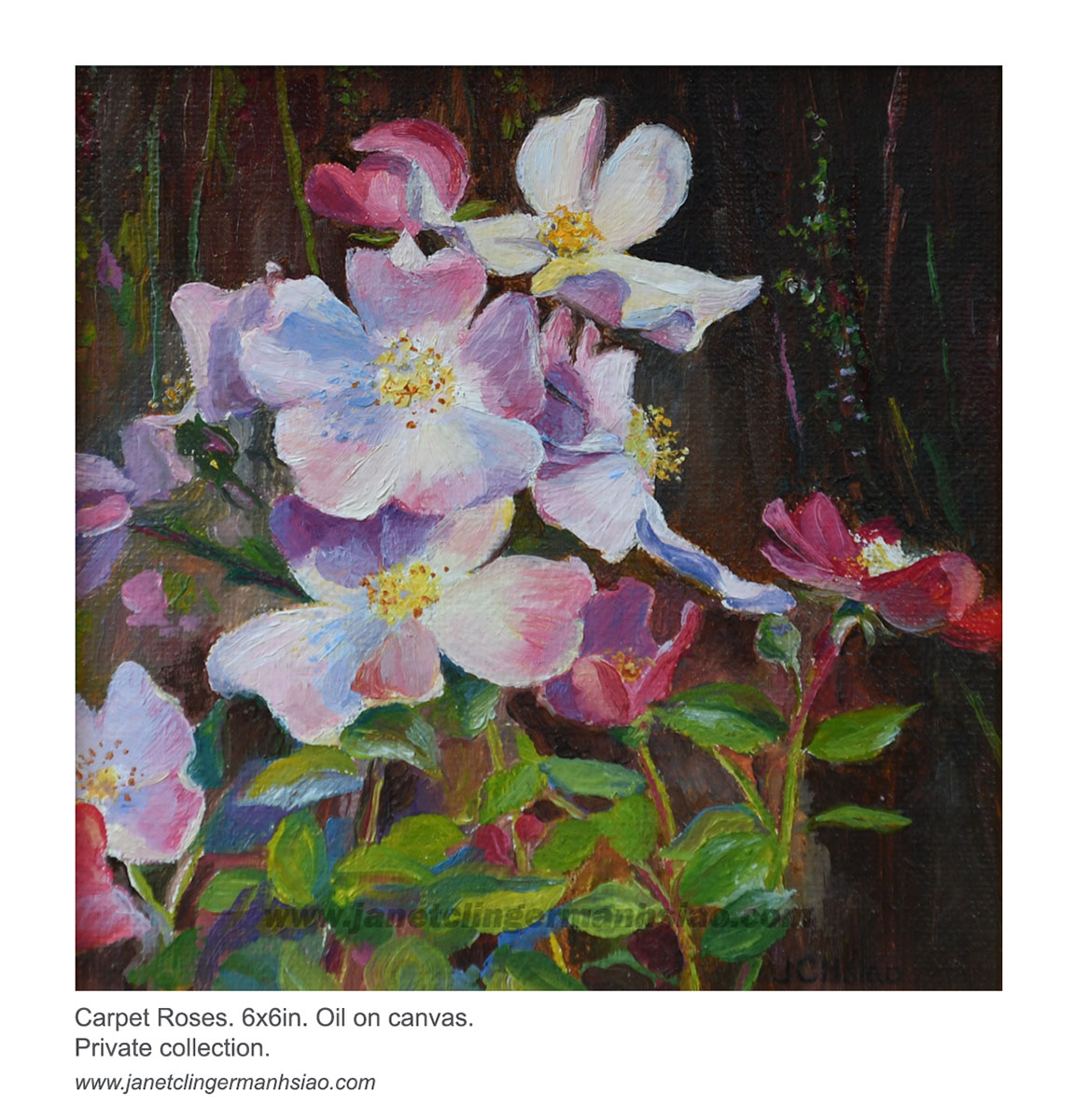 Carpet Roses. 6x6in. Oil on canvas. Private collection.
