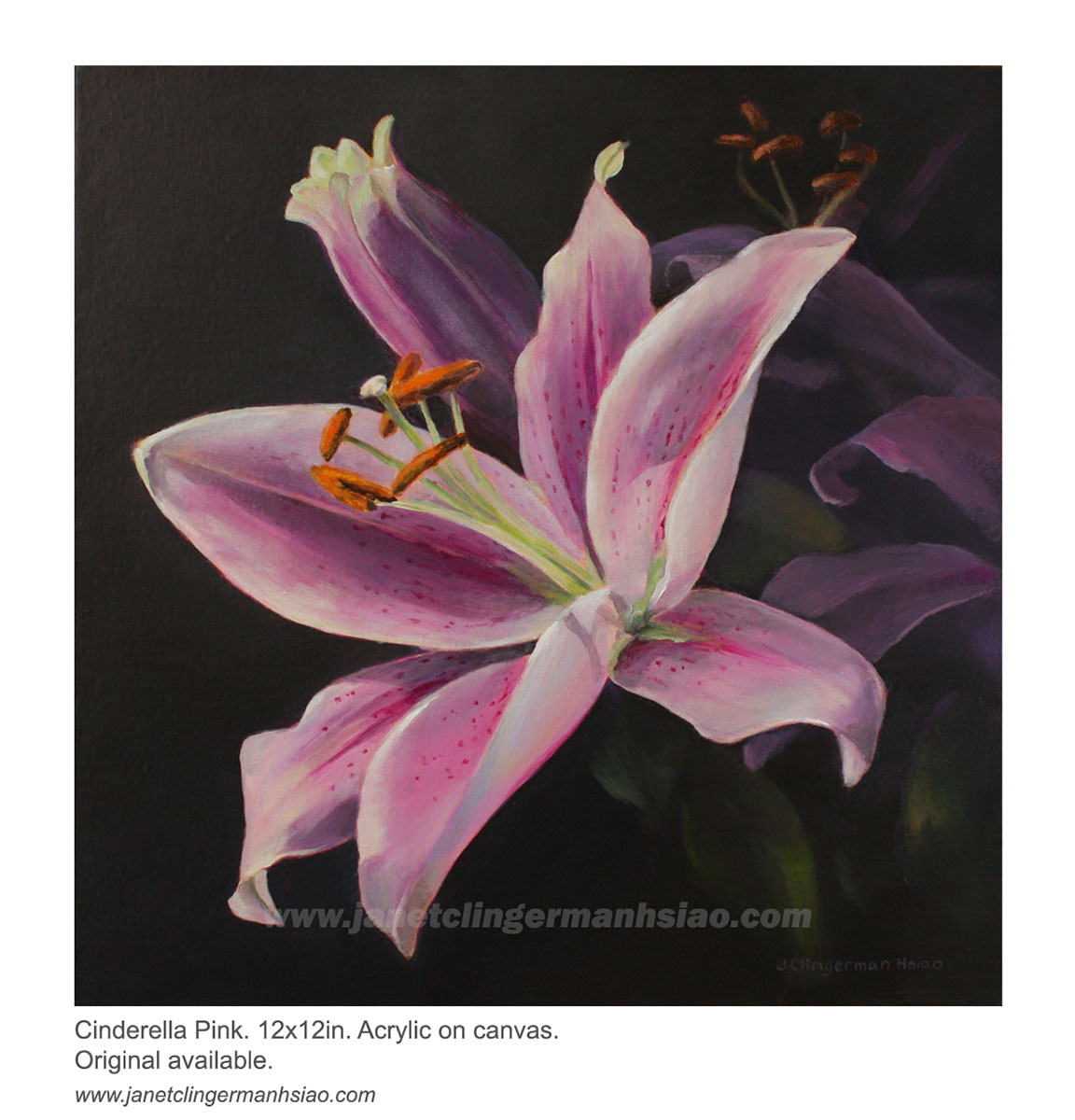 Cinderella Pink. 12x12in. Acrylic on canvas. Original available.