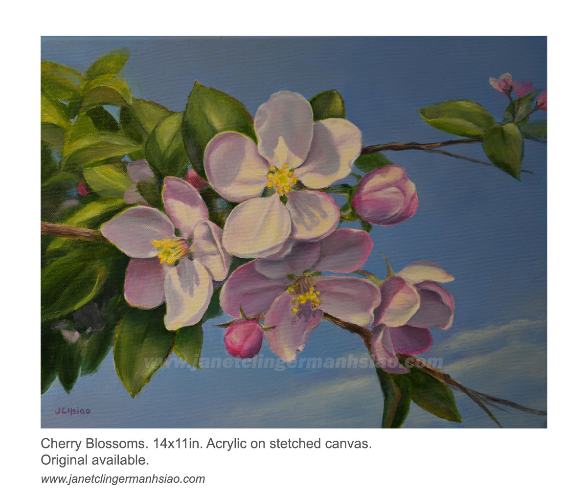 Cherry Blossoms. 14x11in. Acrylic on stetched canvas. Original available.