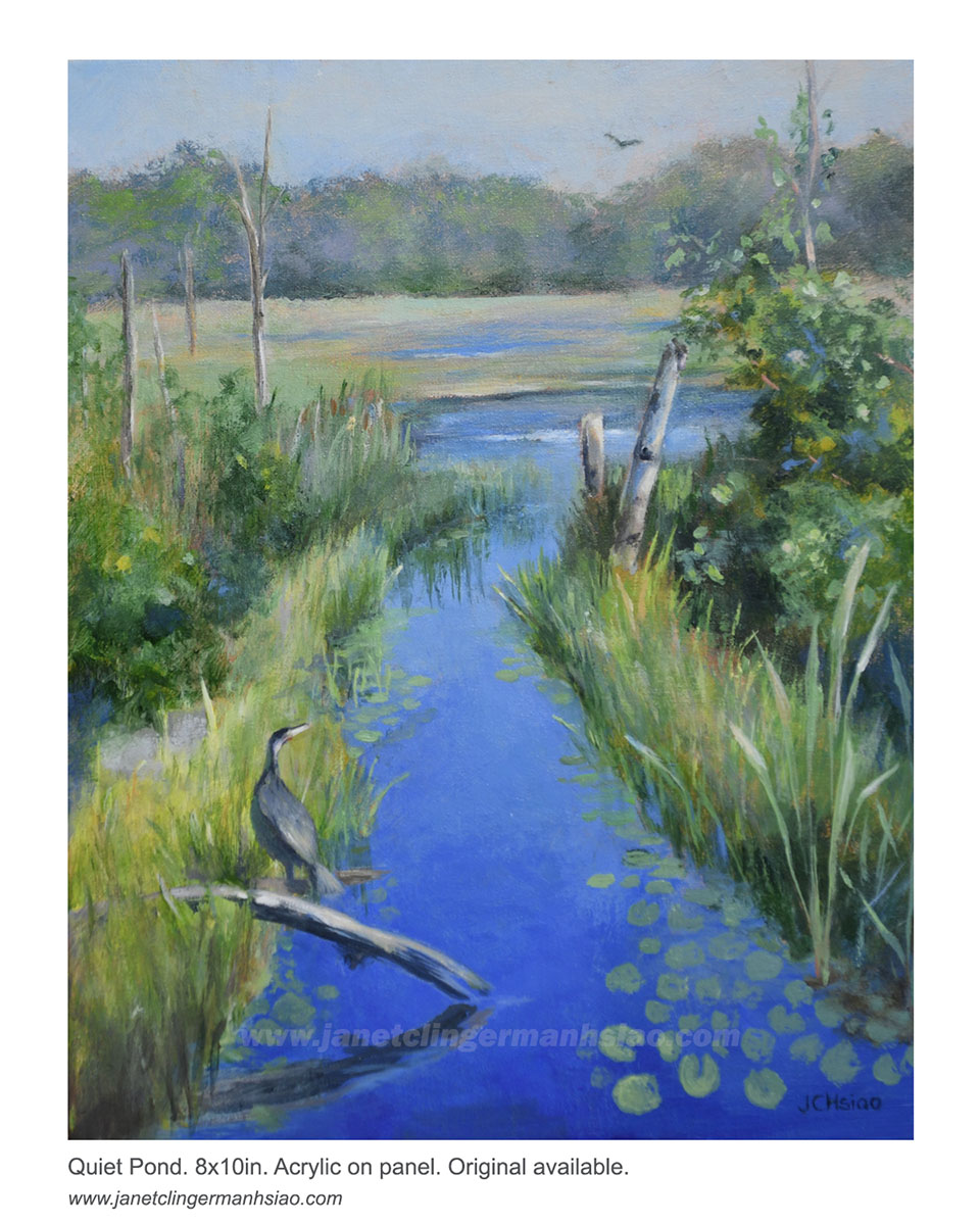 Quiet Pond. 8x10in. Acrylic on panel. Original available.