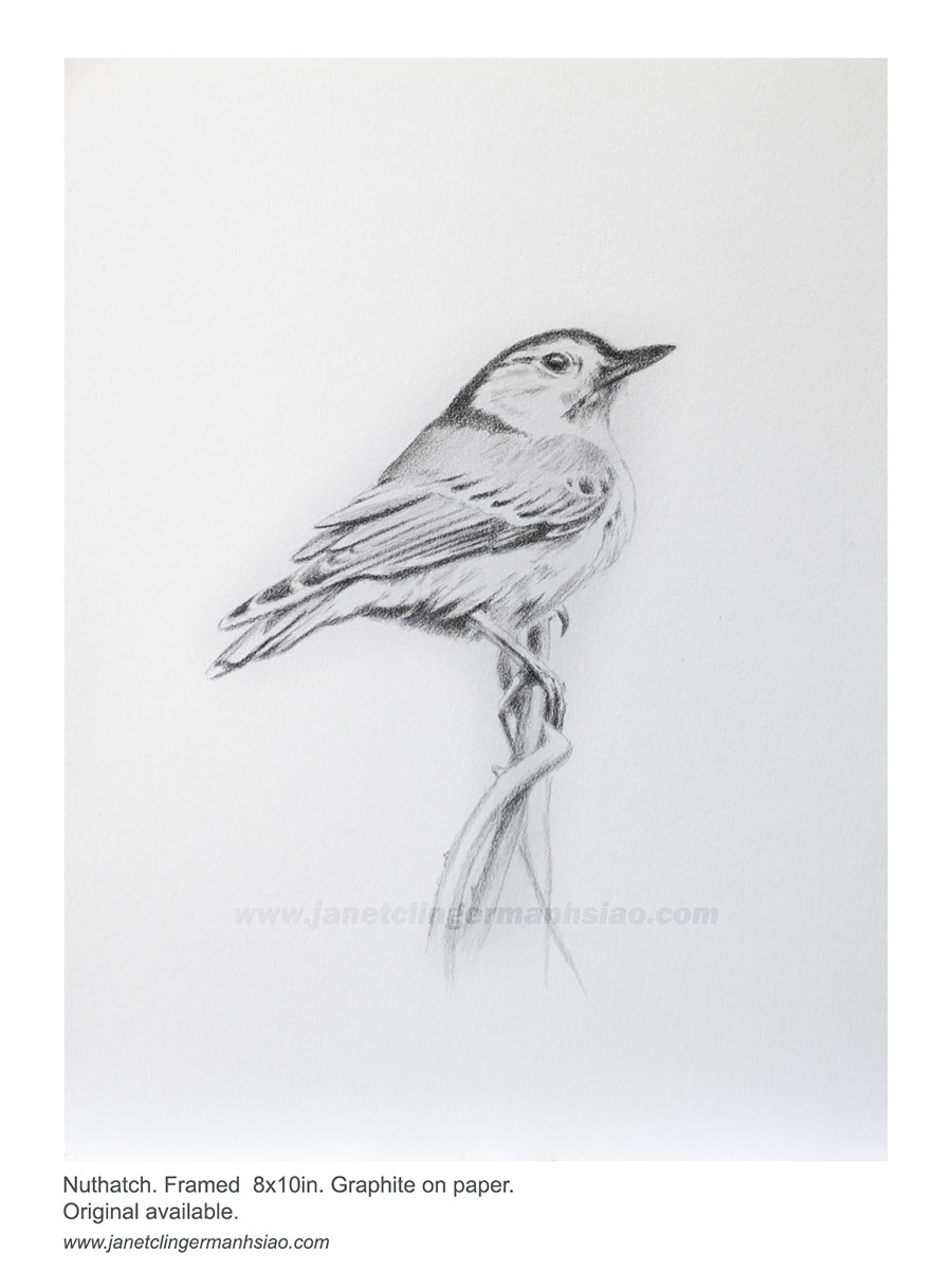 Nuthatch. Framed 8x10in. Graphite on paper. Original available.