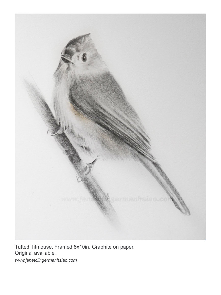 Tufted Titmouse. Framed 8x10in. Graphite on paper. Original available.