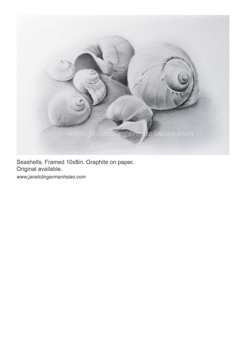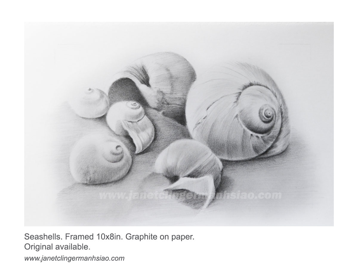 Seashells. Framed 10x8in. Graphite on paper. Original available.