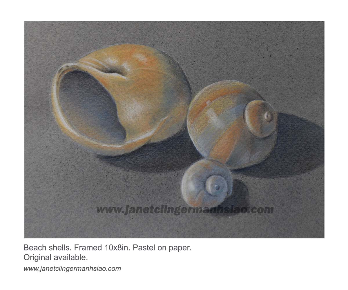 Beach shells. Framed 10x8in. Pastel on paper. Original available.